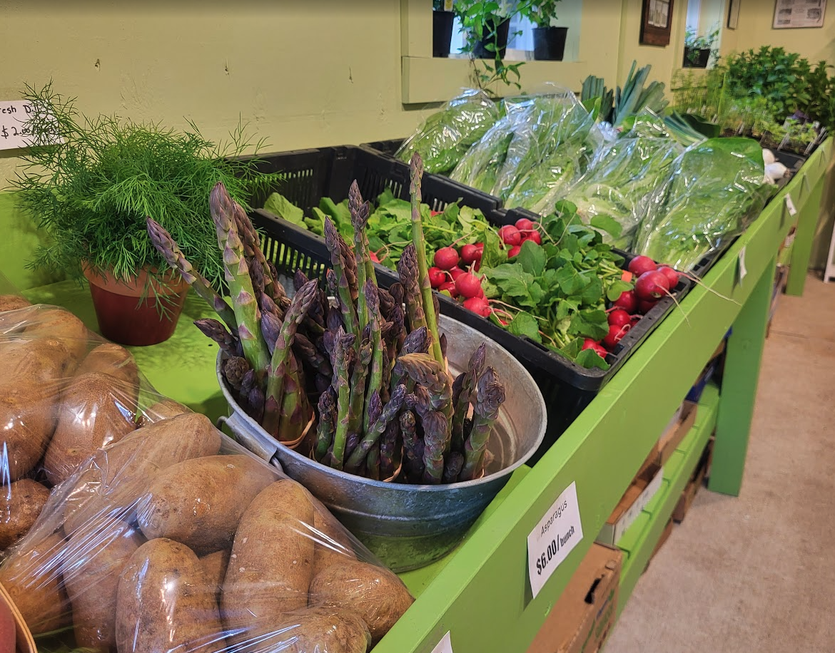 Farm-Grown Items: Seasonal vegetables, fresh flowers, herbs, salad greens, and starter plants.